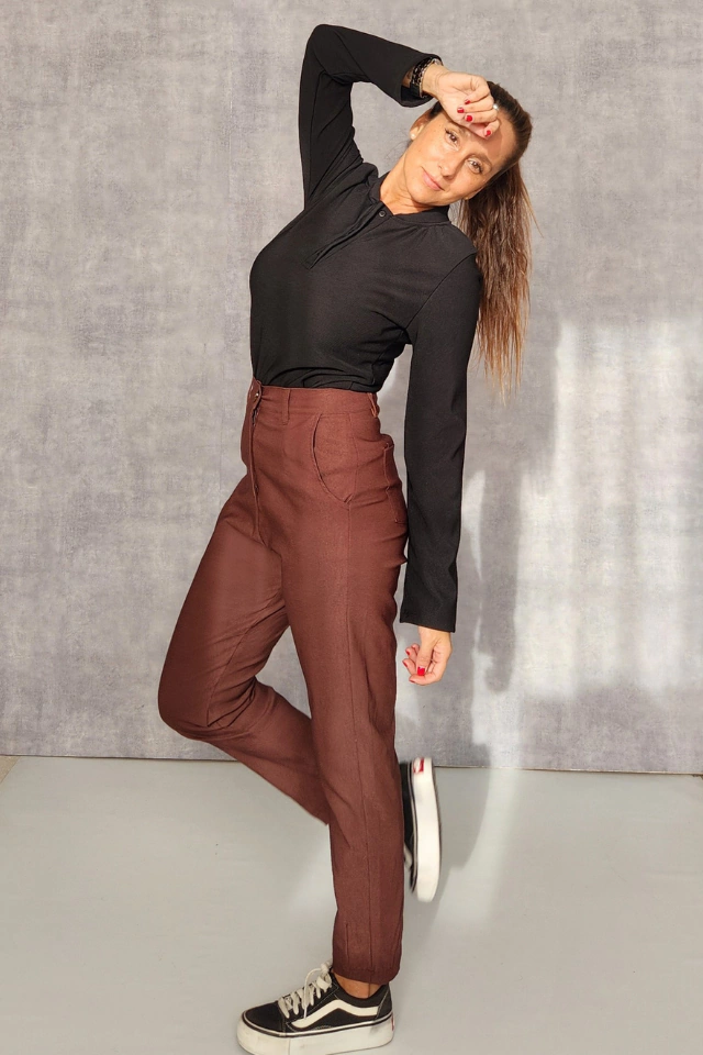 Pantalón slouchy, lleva pinzas en el delantero y espalda, bolsillos laterales y traseros, tiene pinzas en el bajo.